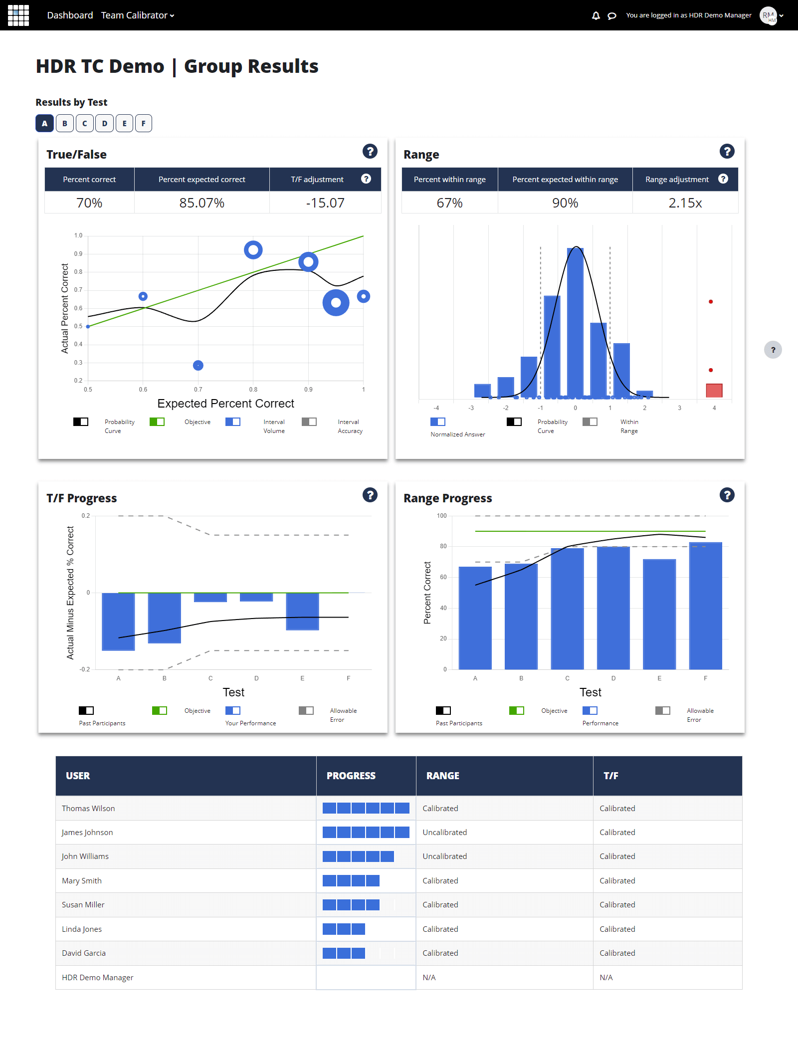 Team Calibrator is designed to improve the most important measurement instrument in your organization: your subject matter experts. Additionally, managers can review the progress of a group and measure the impact of calibration.